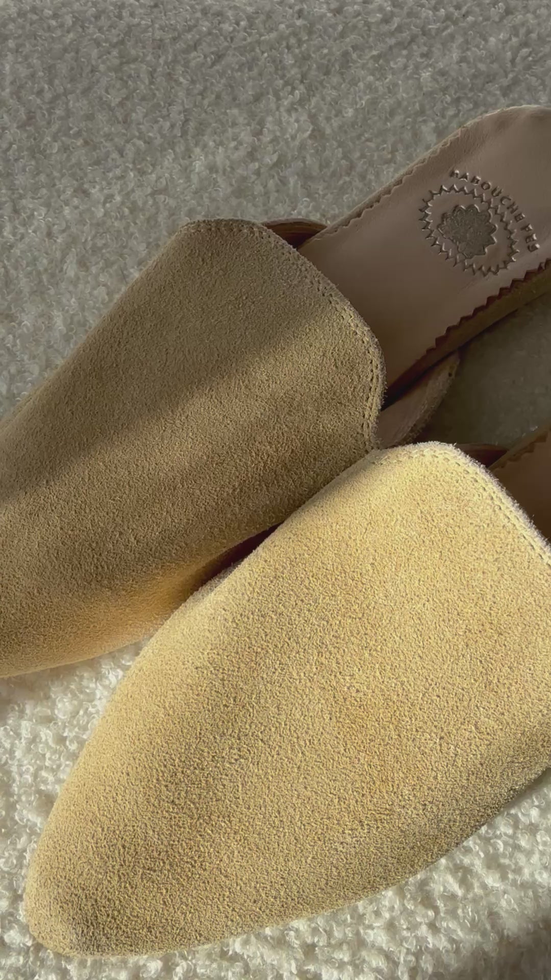 Babouches chic et confortables fabriquées à la main au Maroc en cuir véritable et en daim couleur beige